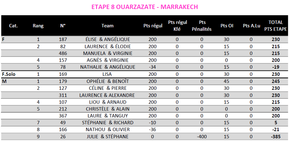 Les classements de la 4e édition